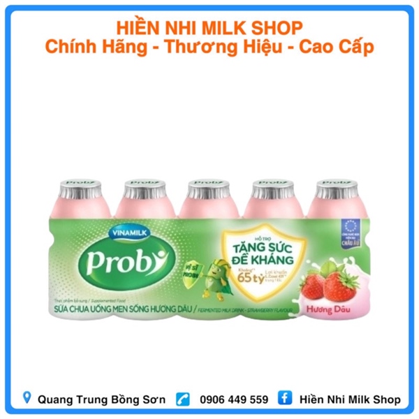 - Sản phẩm: Sữa uống lên men Probi 65ml (nhiều hương vị: dâu, dứa, việt quất, cam; có đường & ít đường)